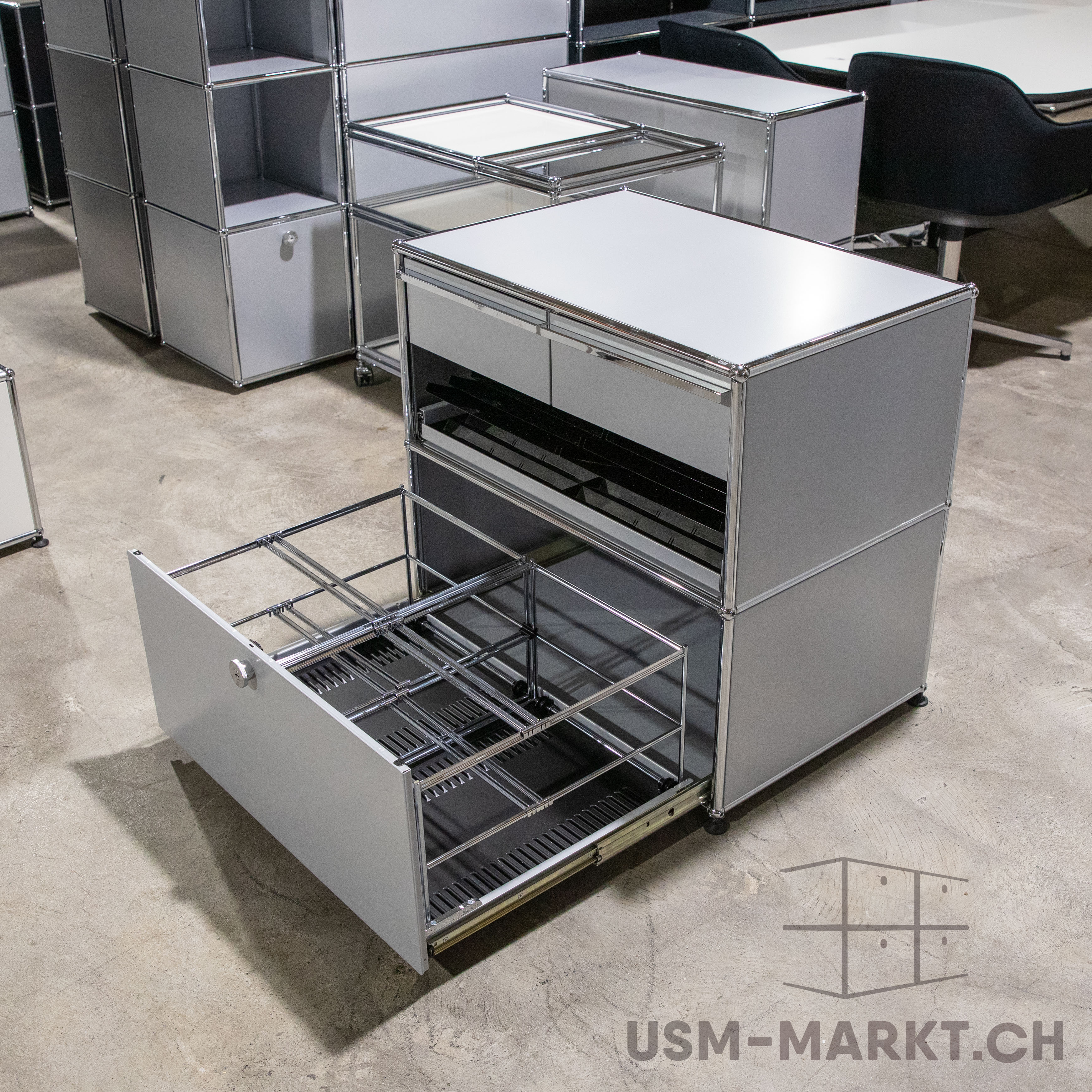 Gebrauchter USM Haller Beistellkorpus in Mattsilber.