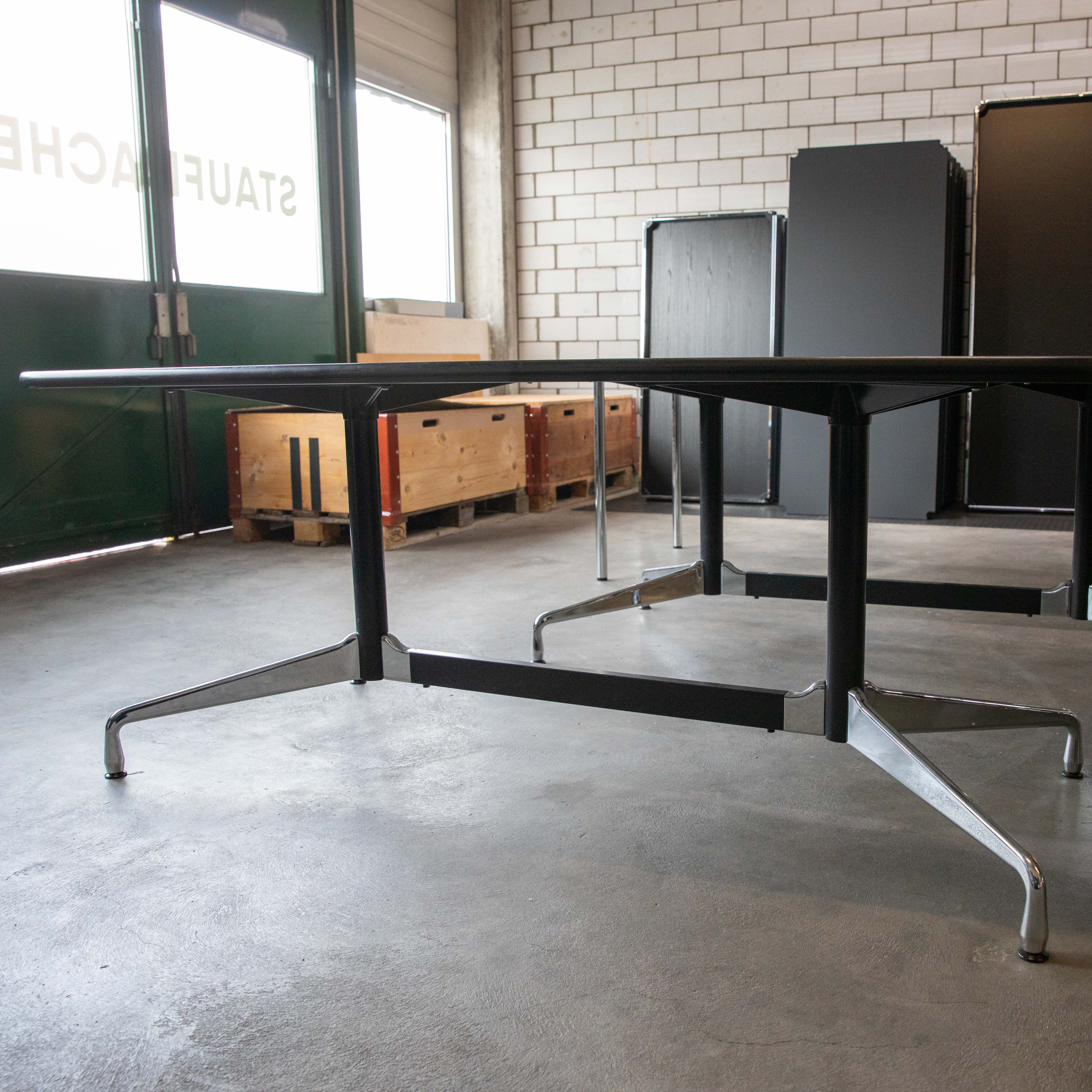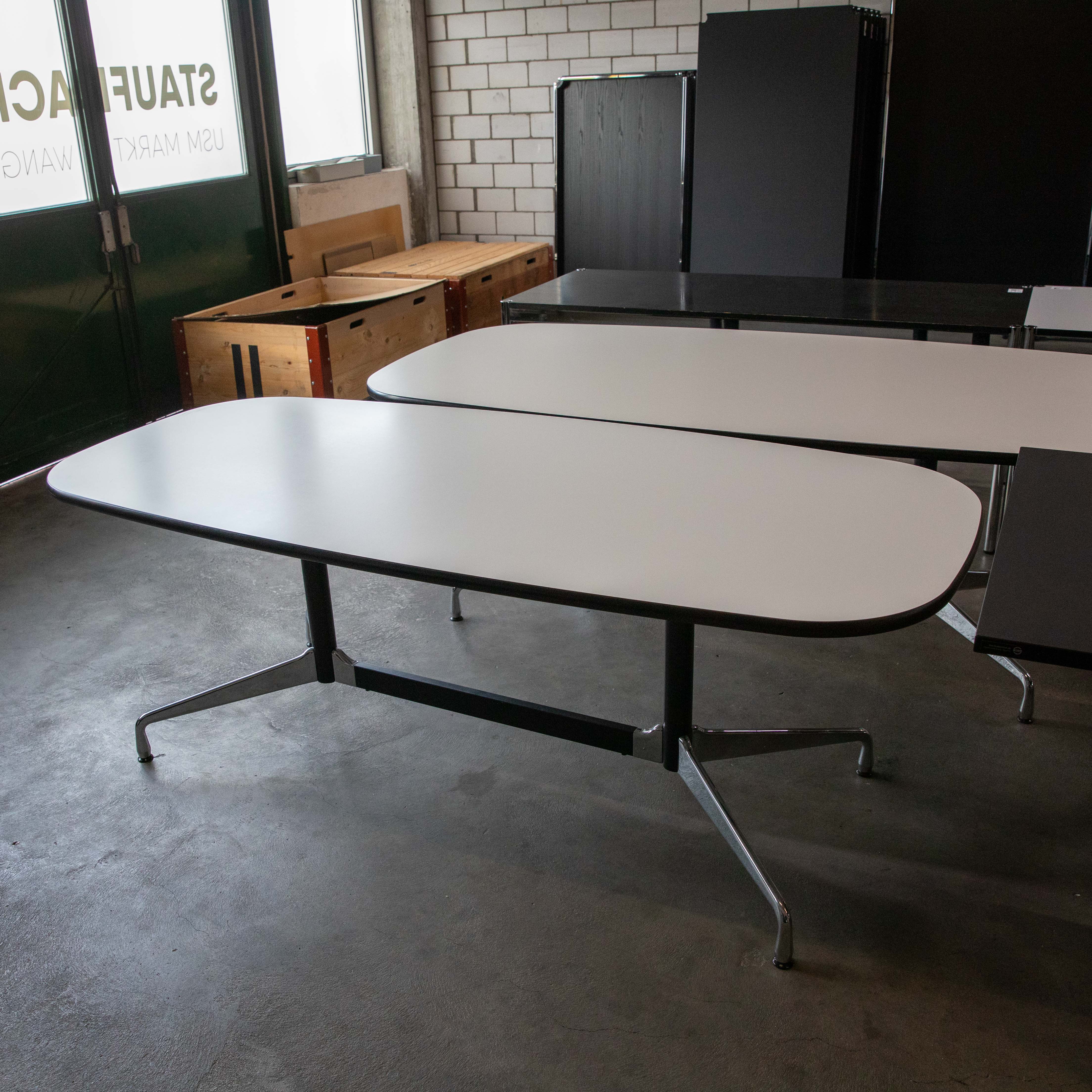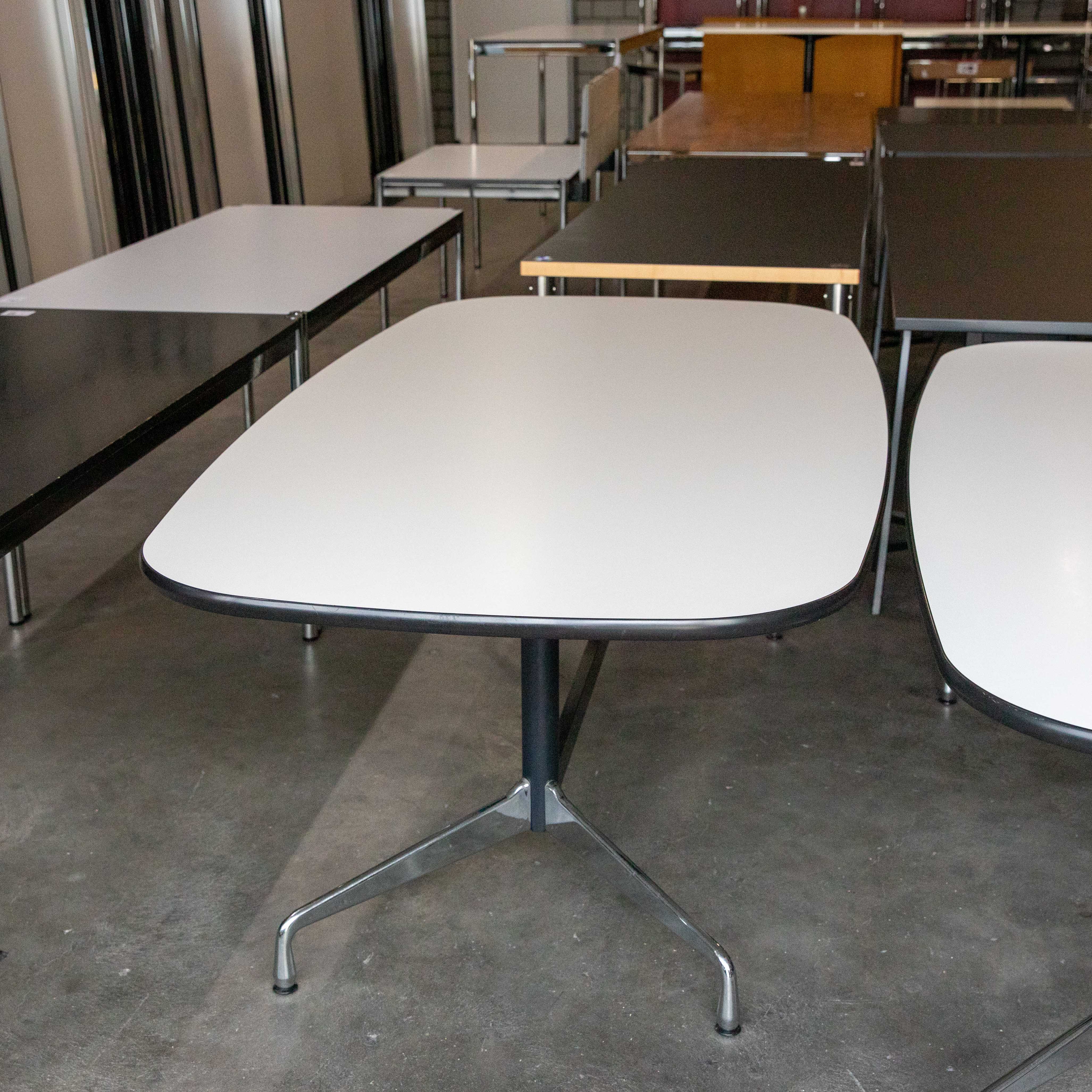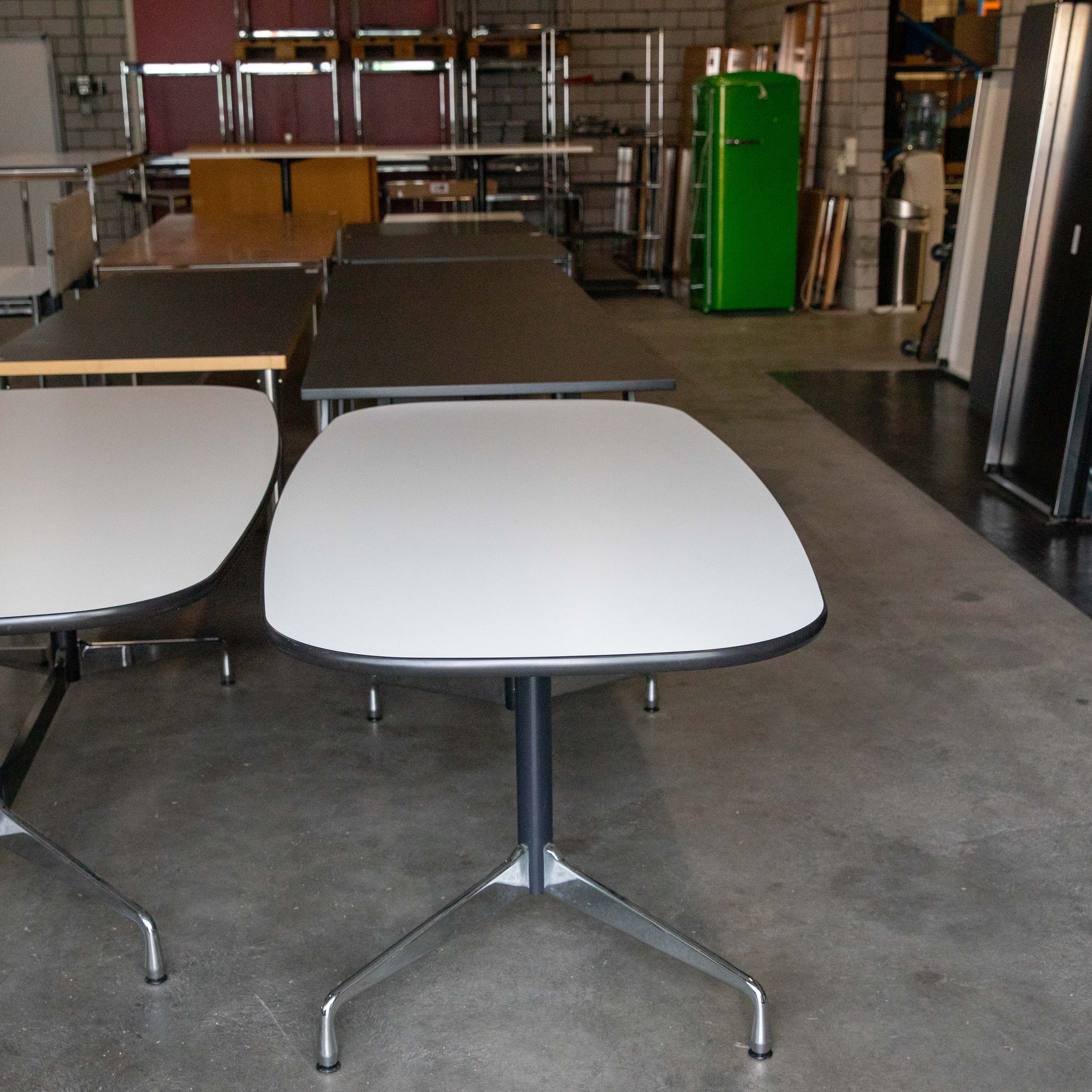 Gebrauchter Vitra Konferenztisch. Tischblatt in bootsform, Kunstharz Weiss mit schwarzer...mehr