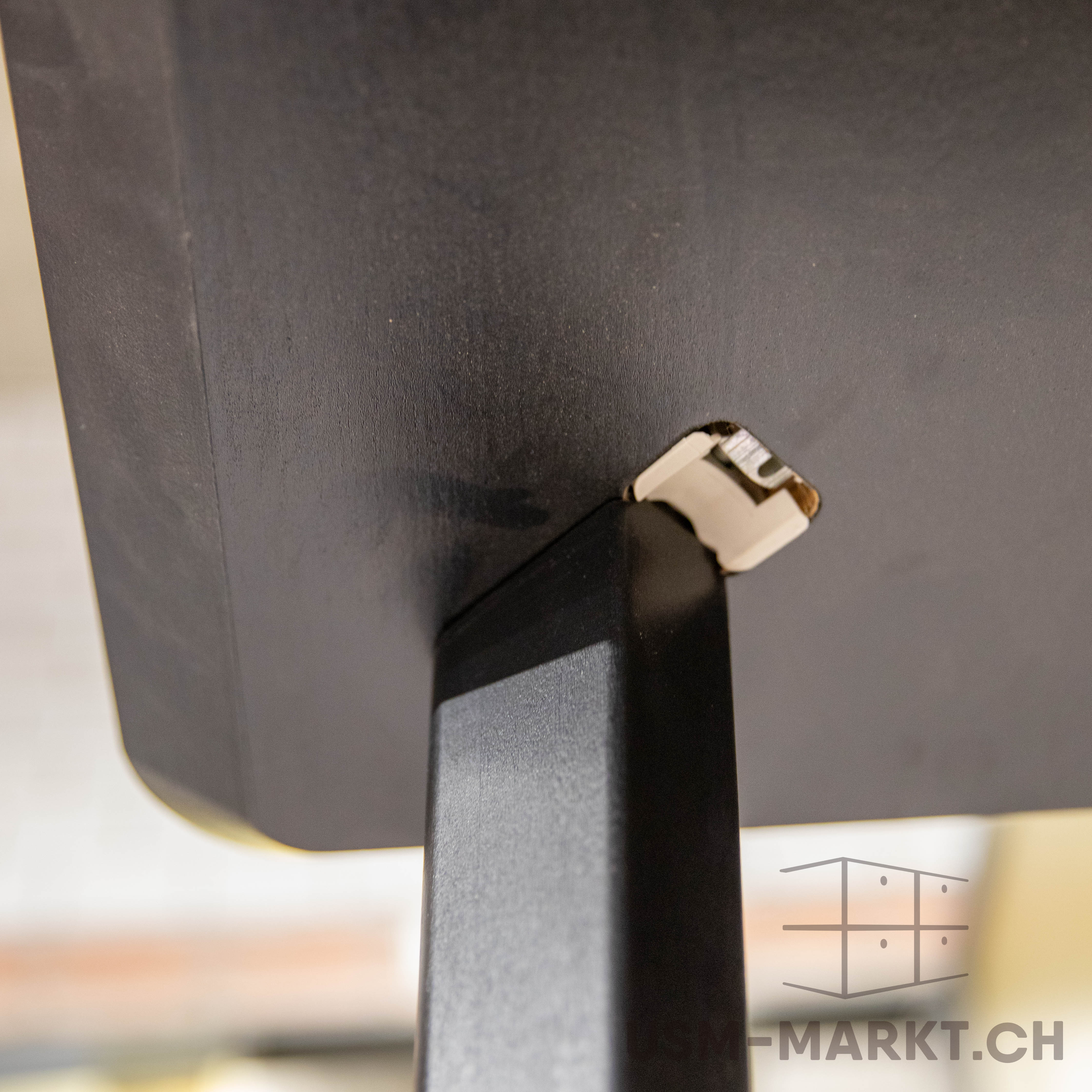 Eiche schwarz furniert. Der Tisch ist sehr leicht, gute Konstruktion.