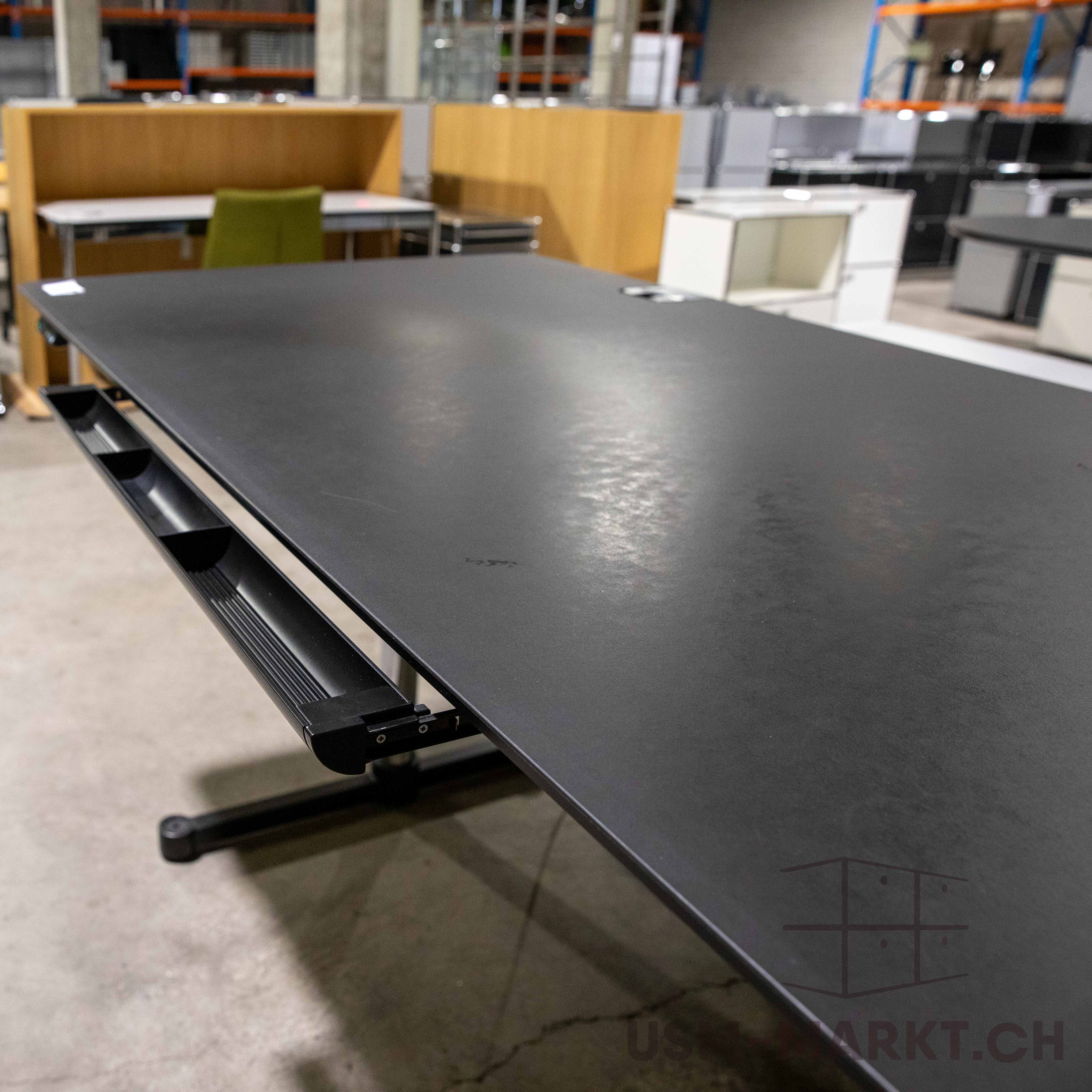 Gebrauchter USM Kitos E Plus, 180x90, Linoleum schwarz, mit Klappe rechts hinten.
