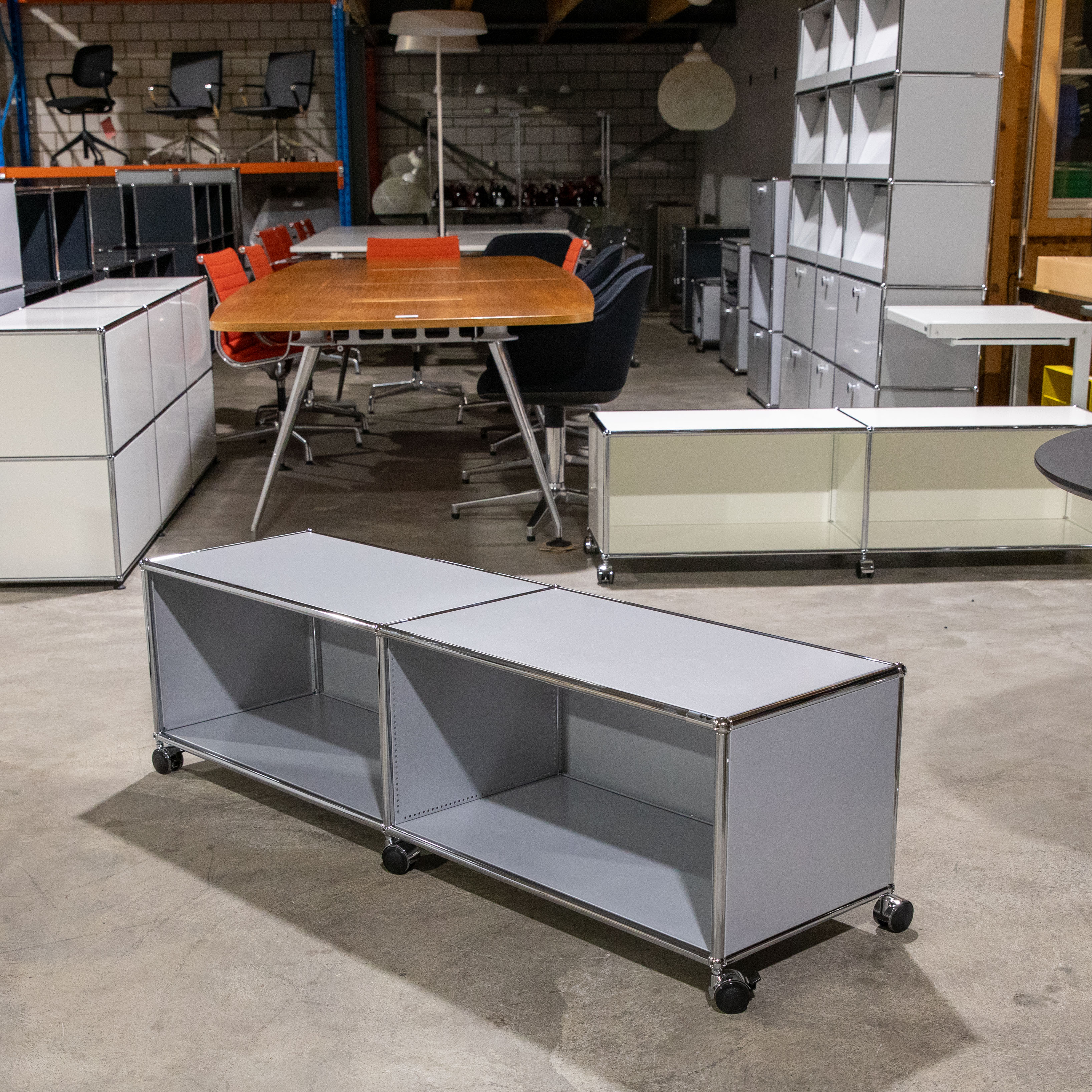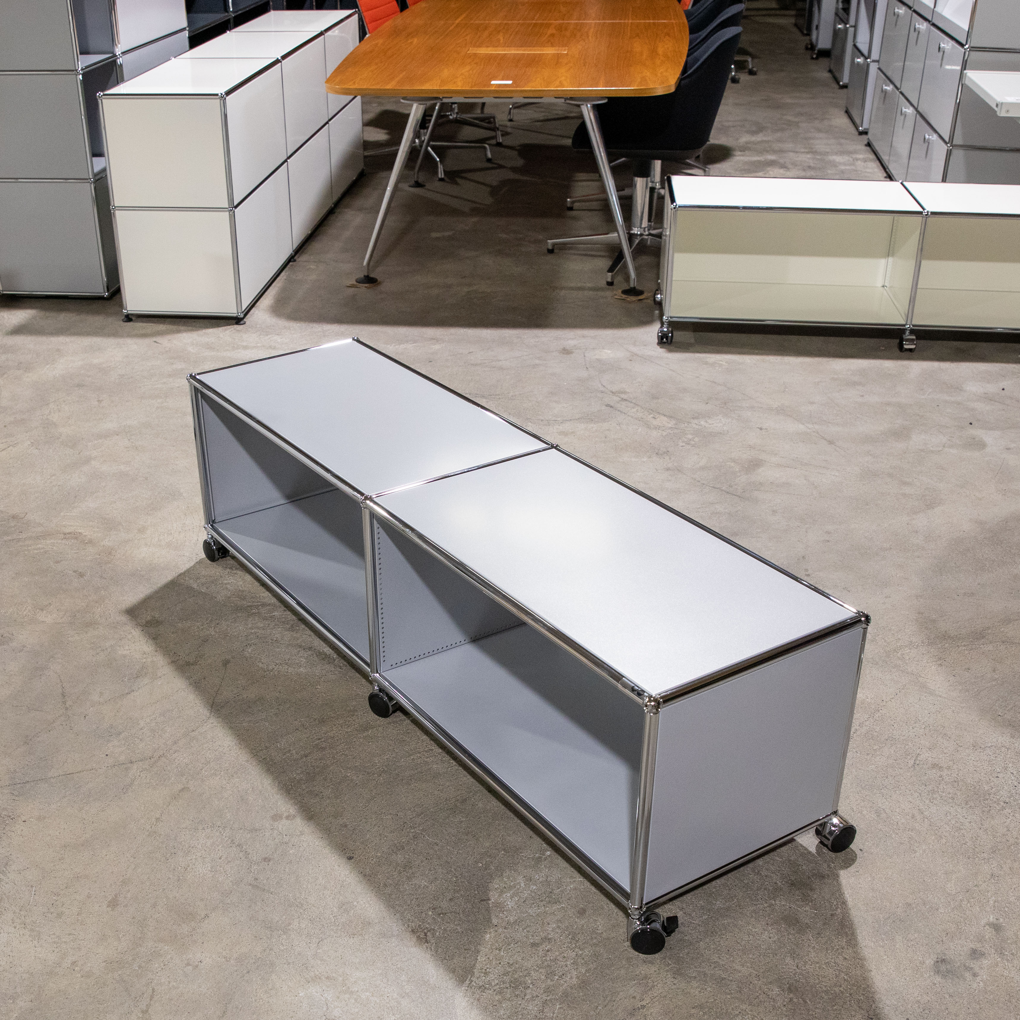 Weiterführende Links zu "USM Haller Regal 2x1 395 tief Mattsilber mit Rollen"