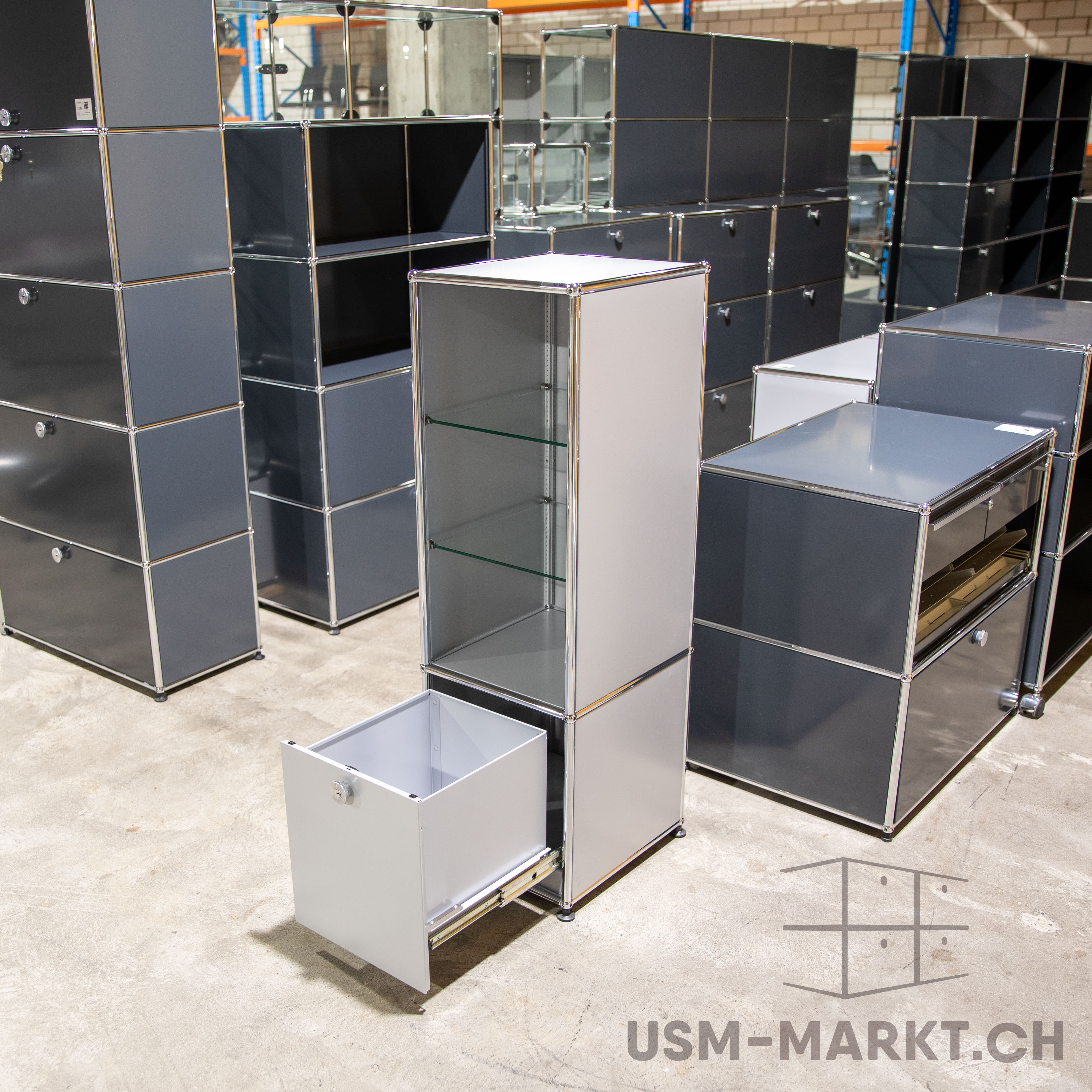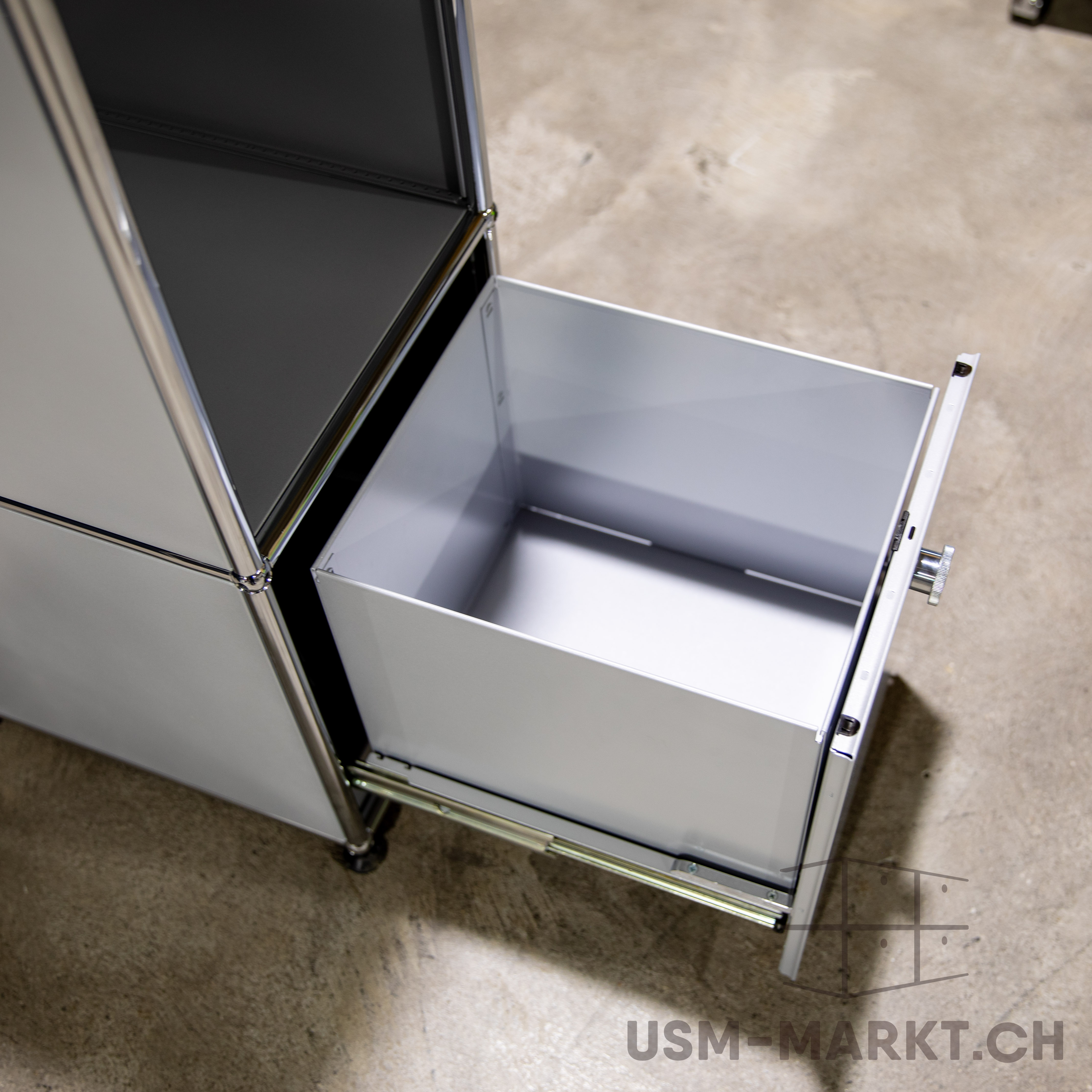 Gebrauchtes USM Haller Möbel in Mattsilber, mit Spezialmassen.