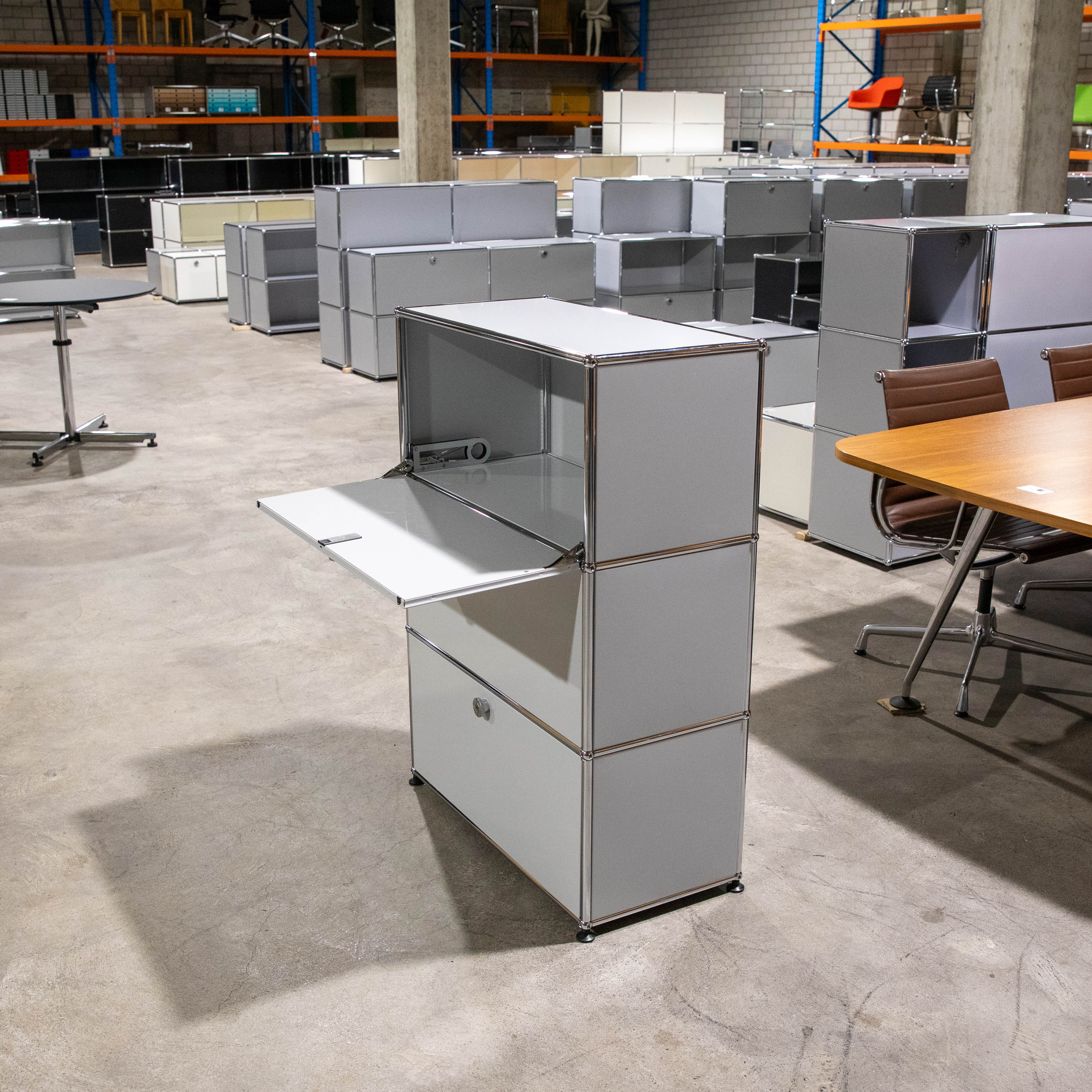 Gebrauchtes USM Haller Regal / Sekretärmöbel in Lichtgrau. 1x3, 35 tief, 1x Ausziehtüre mit...mehr